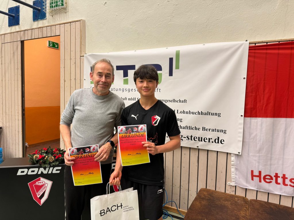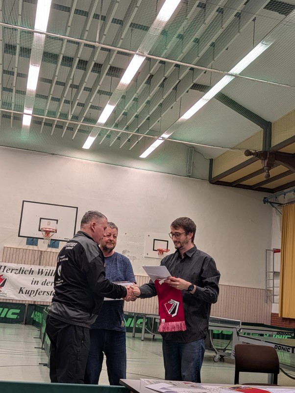 Robert Roß wurde für seine jahrelange ehrenamtliche Tätigkeit als Trainer für den MSV Hettstedt und den Verband mit der Ehrennadel des LSB in Silber und des TTVSA in Bronze ausgezeichnet.